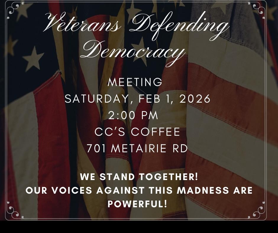 Come grab a cup of coffee and join the Veterans Defending Democracy.
