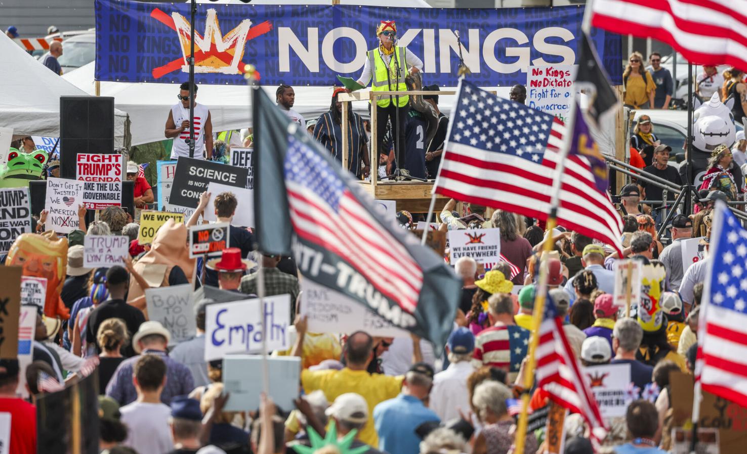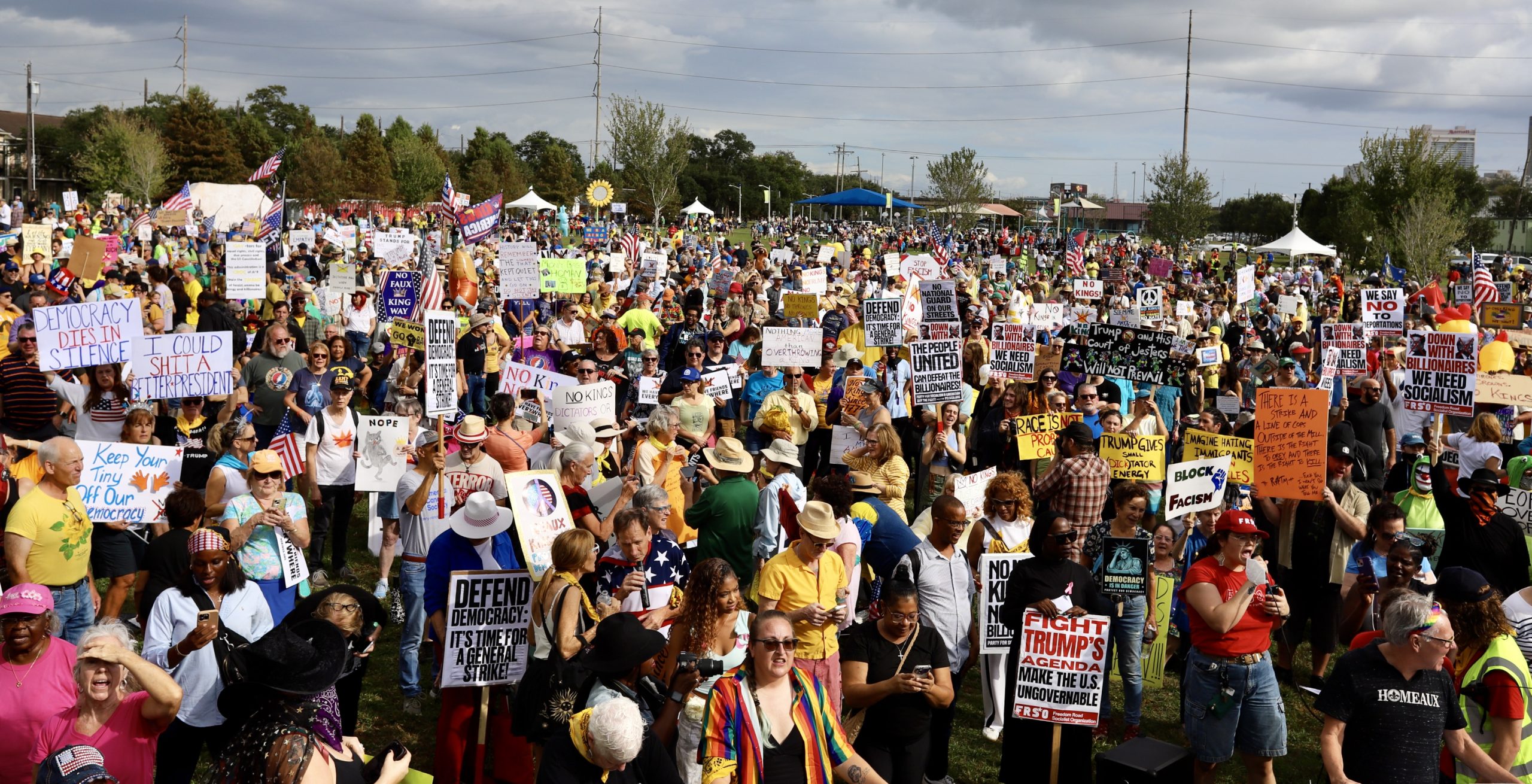 On October 18, 2025, more than 12,500 people joined us in Lafitte Greenway to publicly and peacefully show opposition to the Trump administration. Nationally, nearly seven million Americans gathered in over 2,700 cities and towns for the No Kings 2.0 Day of Peaceful Action, standing together in nonviolent defiance of authoritarianism and affirming that this nation belongs to its people, not to tyrannical elected officials.